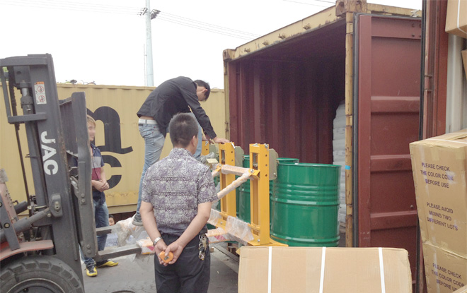 • 客戶使用我們的四油桶夾具