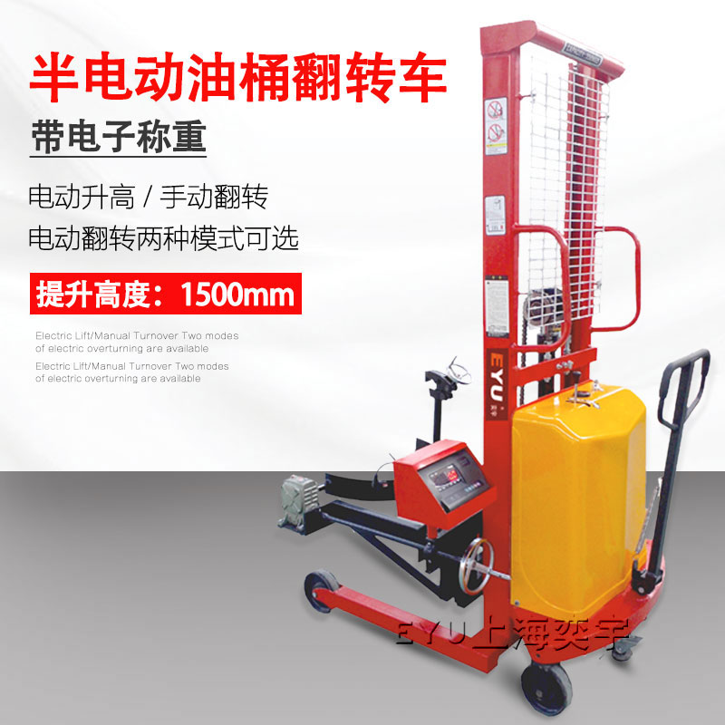半電動油桶夾抱翻轉倒料車