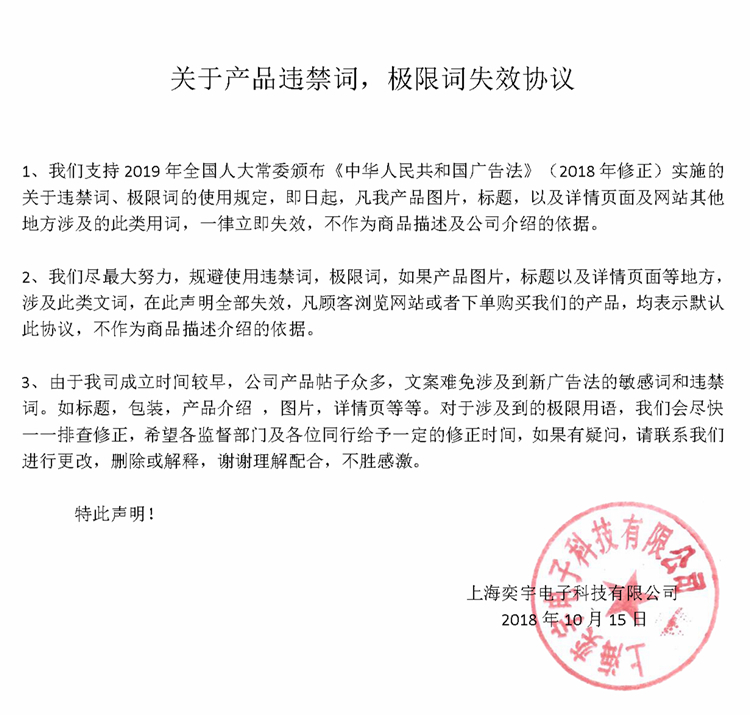 關于產品違禁詞,極限詞失效協議   1、我們支